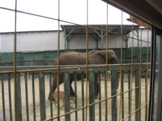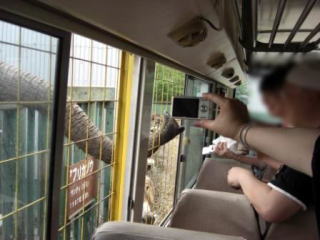 ![]() 柵の外に鼻を出して窓の中に突っ込んできます |
